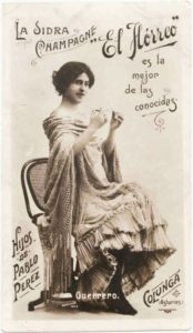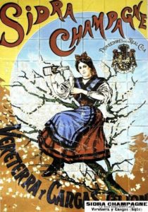El Horreo, the famous champagne cider from Colunga, sponsored the Piper from Libardon in his international early stage at the Expo in Paris 1900 and foreign trendy “starlettes” like Lorraine Dreux.