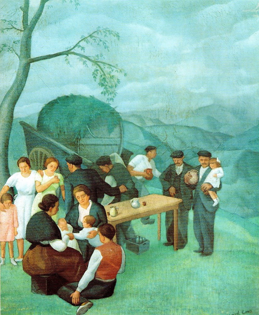Thus, we find artistic works that show the process of harvesting and picking apples, the making of cider and its consumption and its fundamental role in festive atmospheres and cider houses.