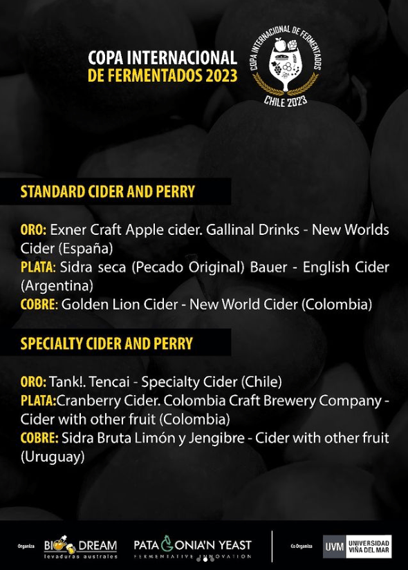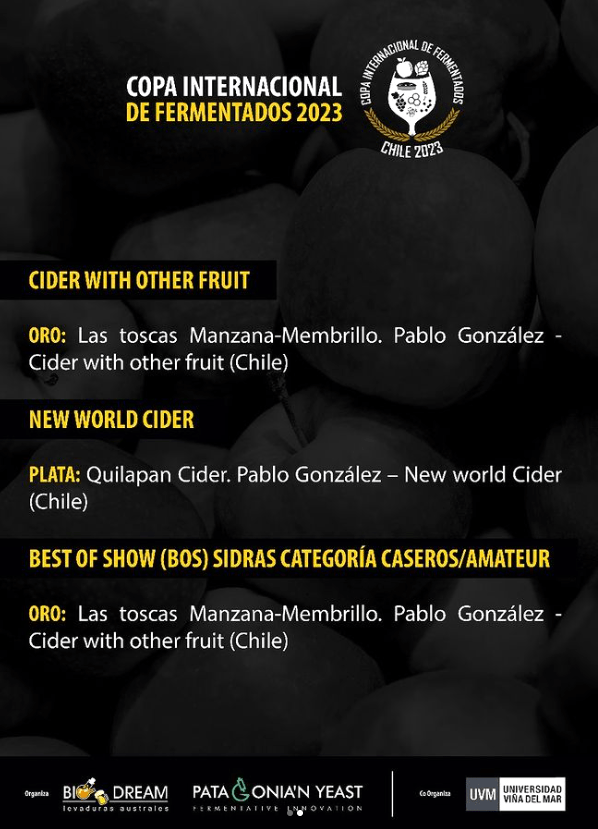 On the other hand, I must congratulate the Chilean cider team Tencai for winning gold in the Professional Category, within the Special Cider and Perry group, with their Tank! fire cider made in collaboration with the brewery Bodega Ergo.