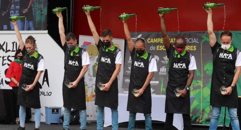 The event was held in Llagar Lolina, where the 24 contestants had to pour six 100 ml. glasses in 70 seconds. Wilkin Aquiles, Worldwide Champion at the Cider Museum at the end of last year, got a score of 126.60.